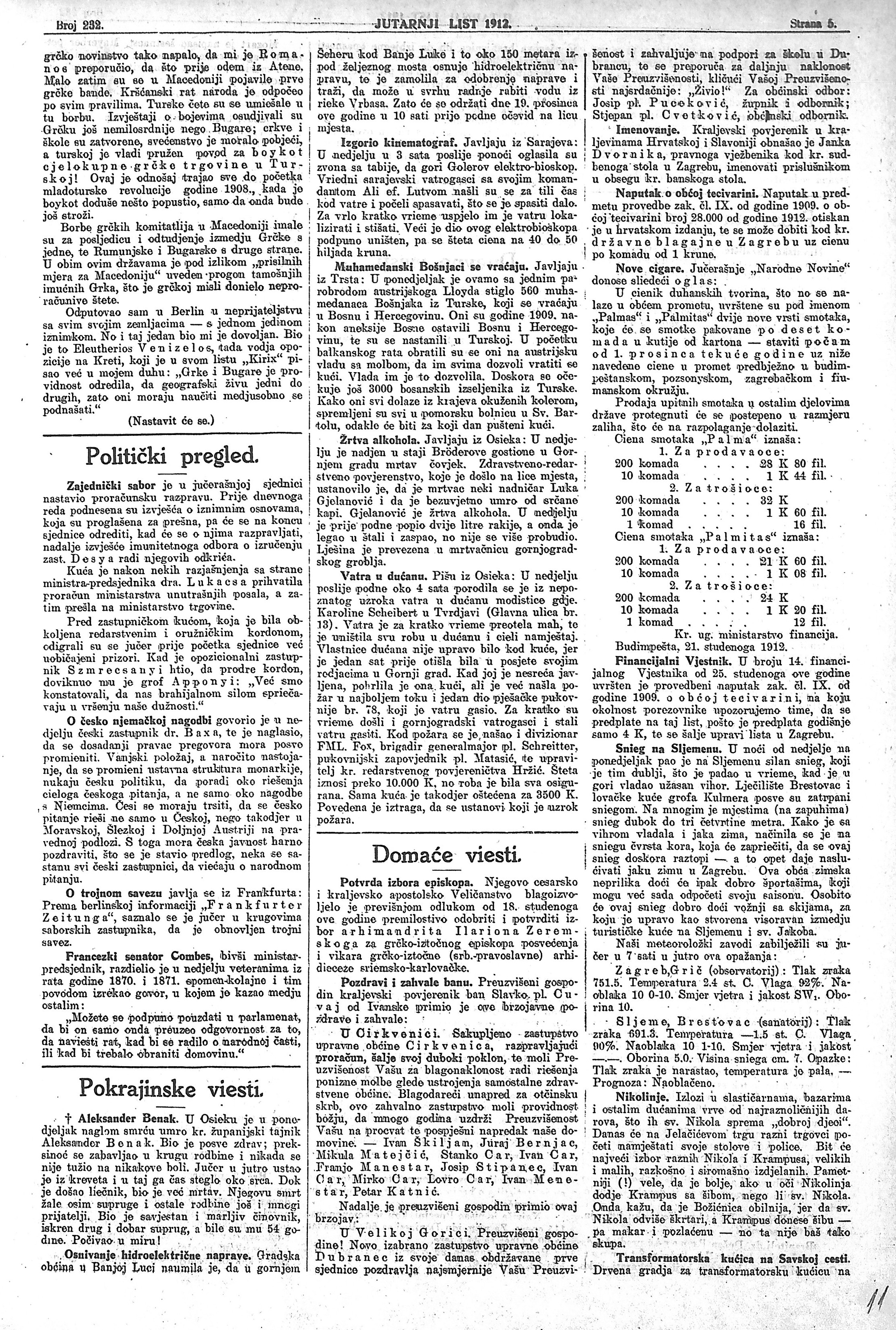 Dnevne su novine 6. prosinca 1914. izvijestile da „tuj imade svega. Jabuka, oraha, sladkiša, sv. Nikola, krampusa i što ja znam čega ne. I šiba ima za krampusa. No i tuj se opaža, da je rat. Vrlo malo, gotovo ništa, ima južnog voća, pa će sv. Nikola ove godine ostati patriota i kupovati domaće voće i povrće, koji će, mimogred budi rečeno, upravo tako ići u slast djeci kao i oni strani.“